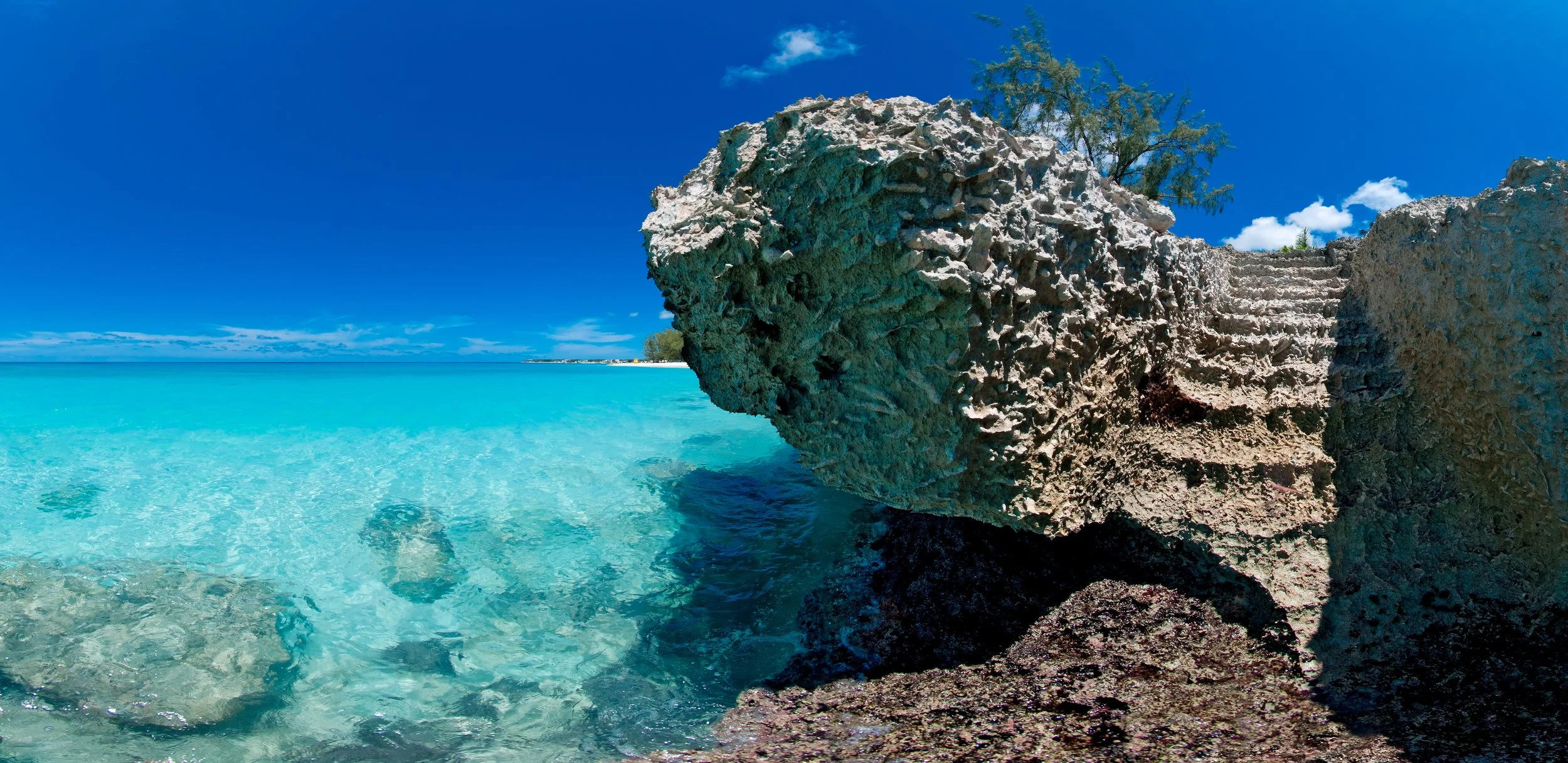 On south coast, where the Atlantic Ocean meets the Caribbean Sea, smaller waves lap against white sands of the nearby Enterprise Beach. A few hundred yards away, large cliffs crop up where the beach ends and continue quite a long distance around the southern coastline. One day, strolling along these cliffs, Dan discovered striking steps carved directly into the coral stone descending to the sea. Not much is known of the origin of this feature. It seems possible that it may have been a diving spot here at one time, long in the past.